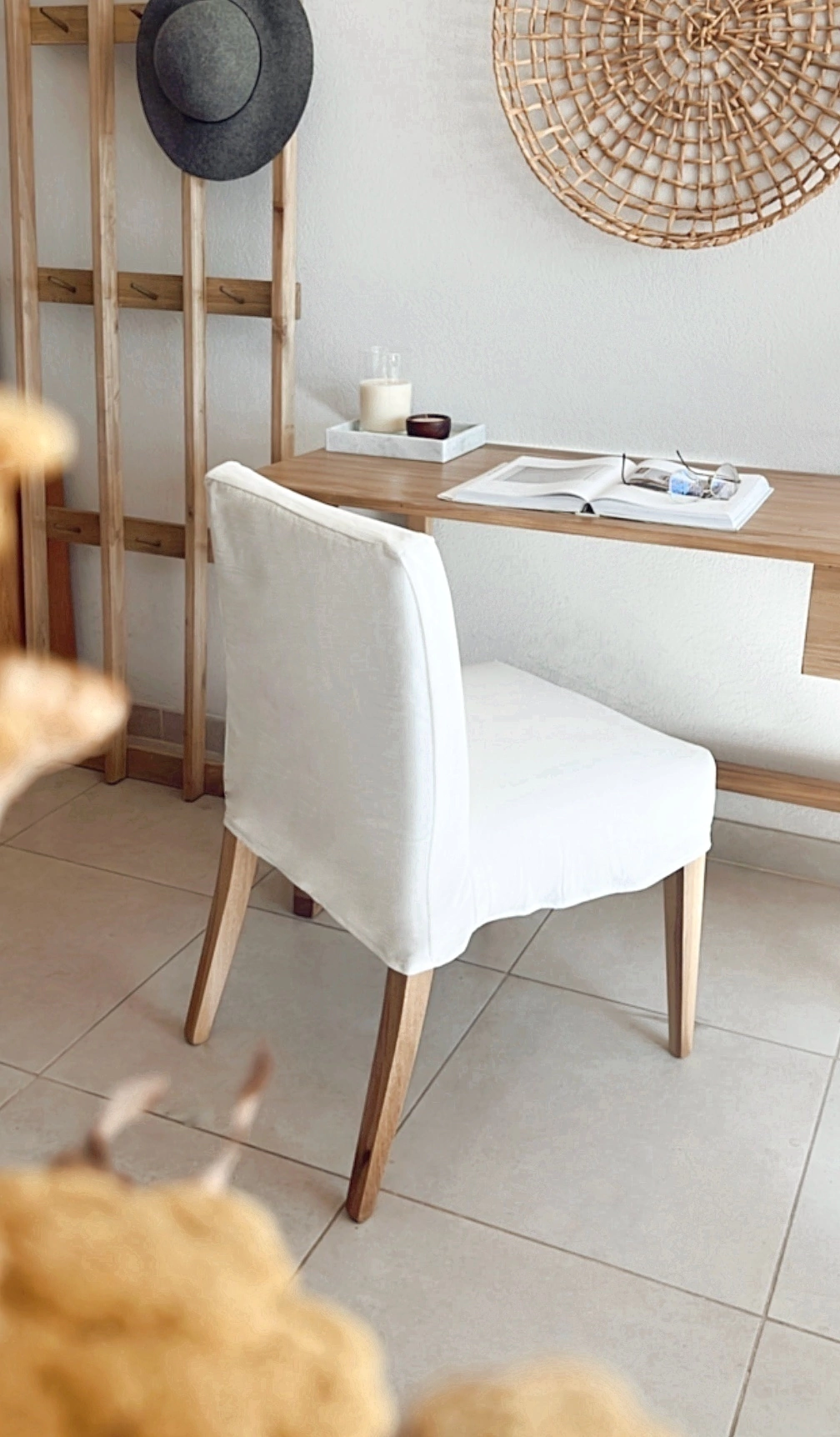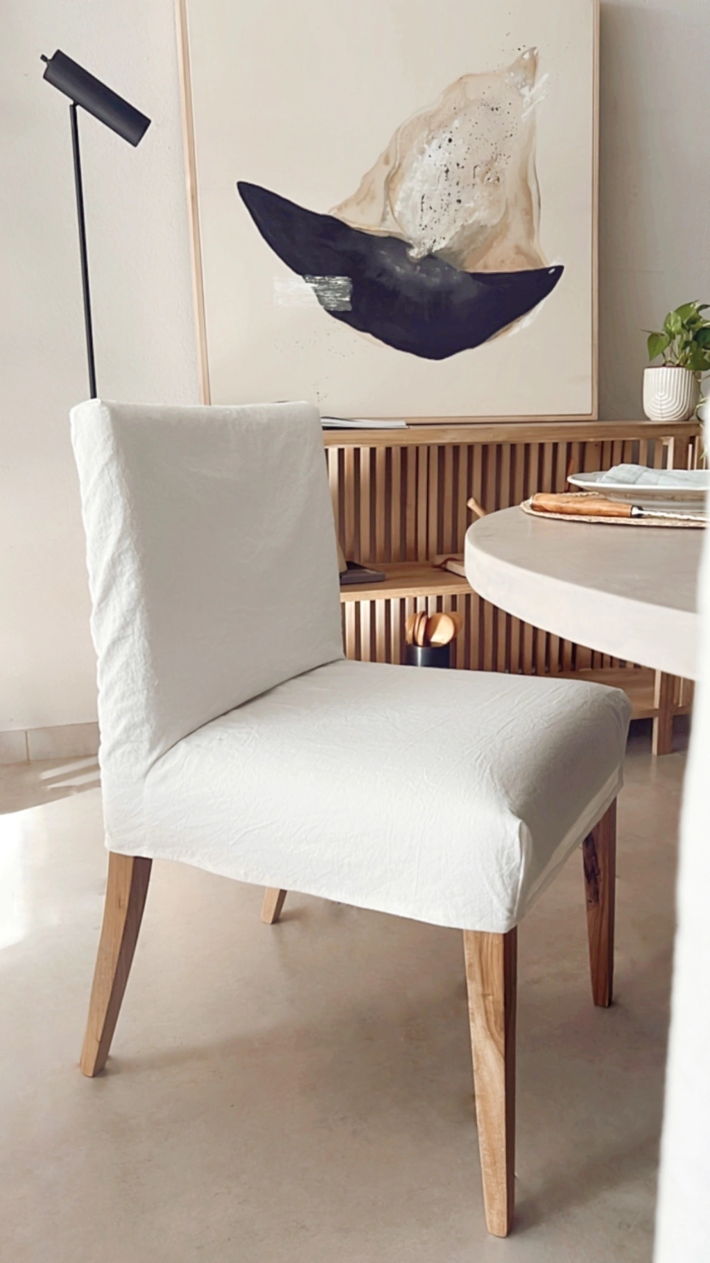 Estructura de petiribi, tapizada en lienzo con funda en tusor off white.